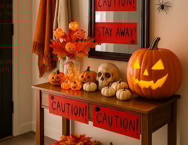 Fini le orange criard ! Aujourdâhui, les dĂ©corations dâHalloween adoptent une palette naturelle et moderne : beige, vert sauge, dorĂ©, noir mat.