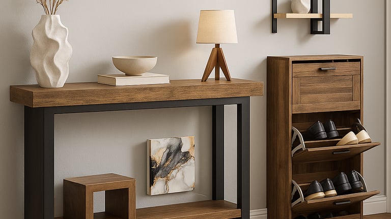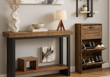 intemporelle de cette console de couloir, conçue pour apporter le charme chaleureux de la maison de campagne à votre intérieur.